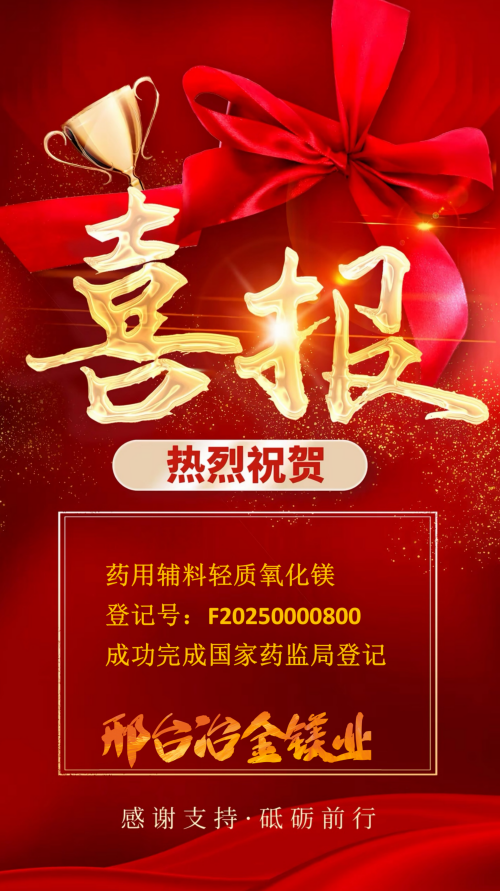 我司旗下藥用輔料輕質(zhì)氧化鎂(登記號:F20250000800)已成功完成國家藥監(jiān)局登記,現(xiàn)正式開放制劑關(guān)聯(lián)合作。